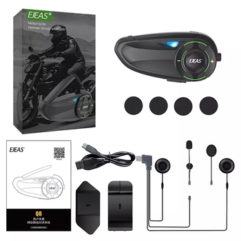EJEAS Q8オートバイメッシュグループインターコムヘルメットヘッドセット6人のライダーが同時に話す音楽共有FM IP67